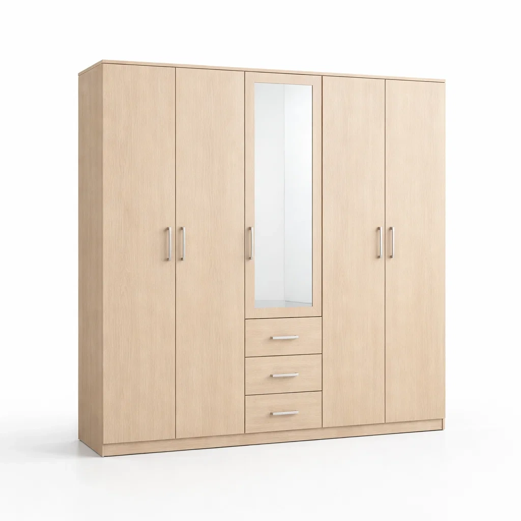 Kleiderschrank mdf mit spiegel und schubladen natur