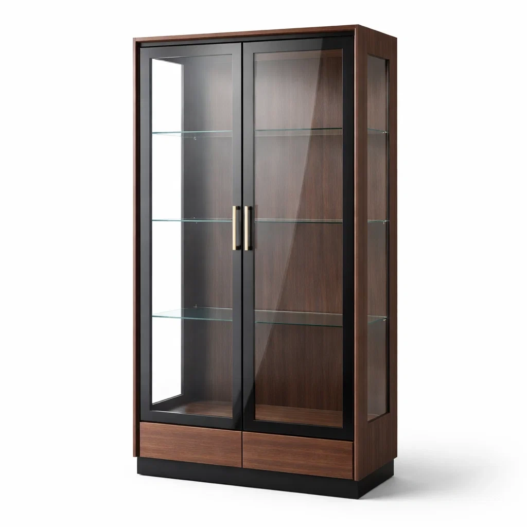 Design: Glastüren, 4 Regalböden.